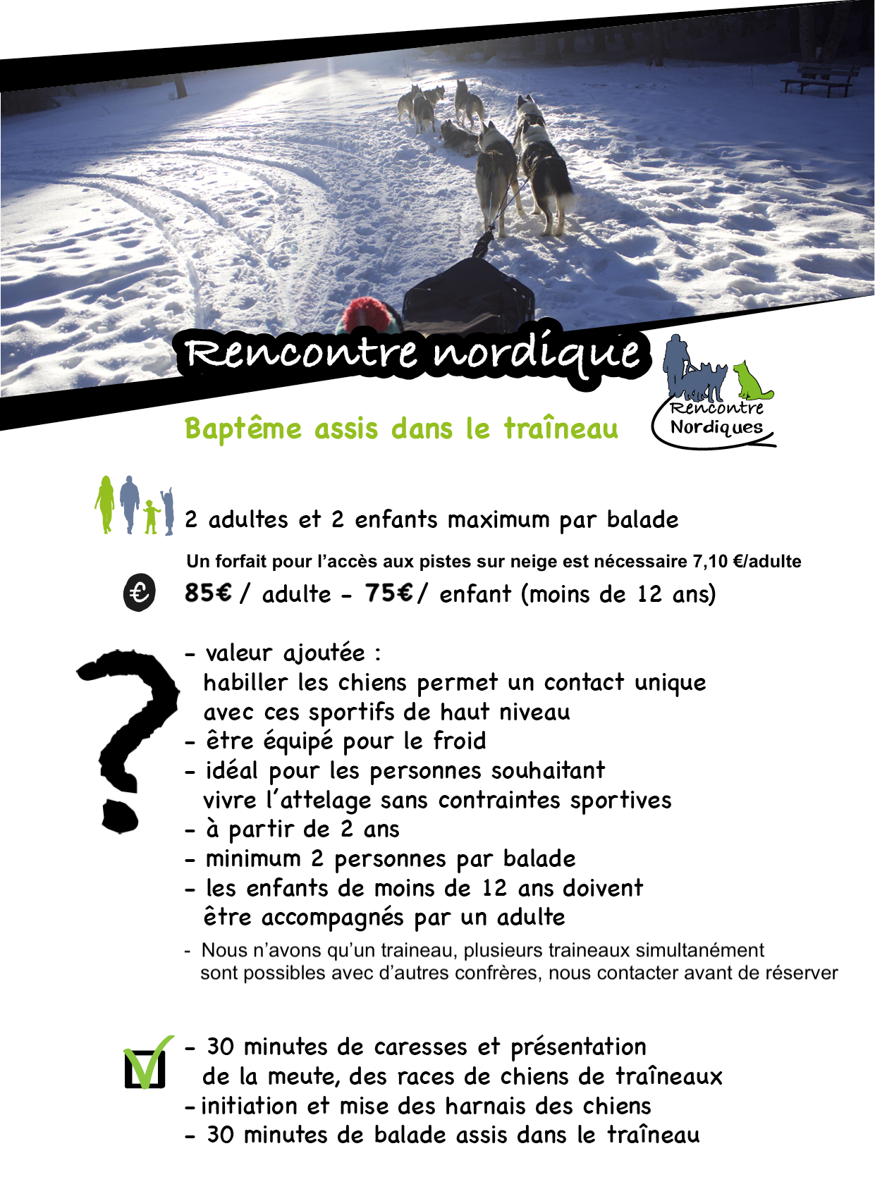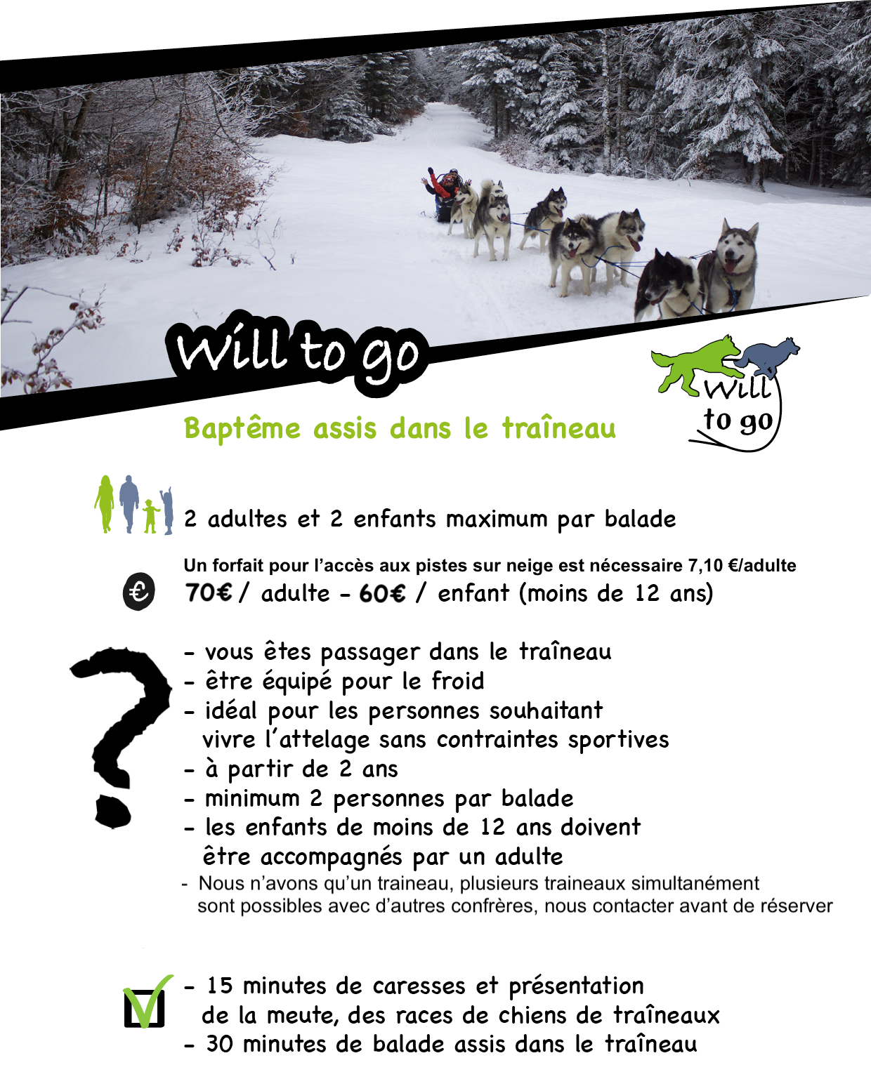 de nos stations en traîneau à chien uniquement sur neige, il faut l’acheter la veille de l’activité uniquement !