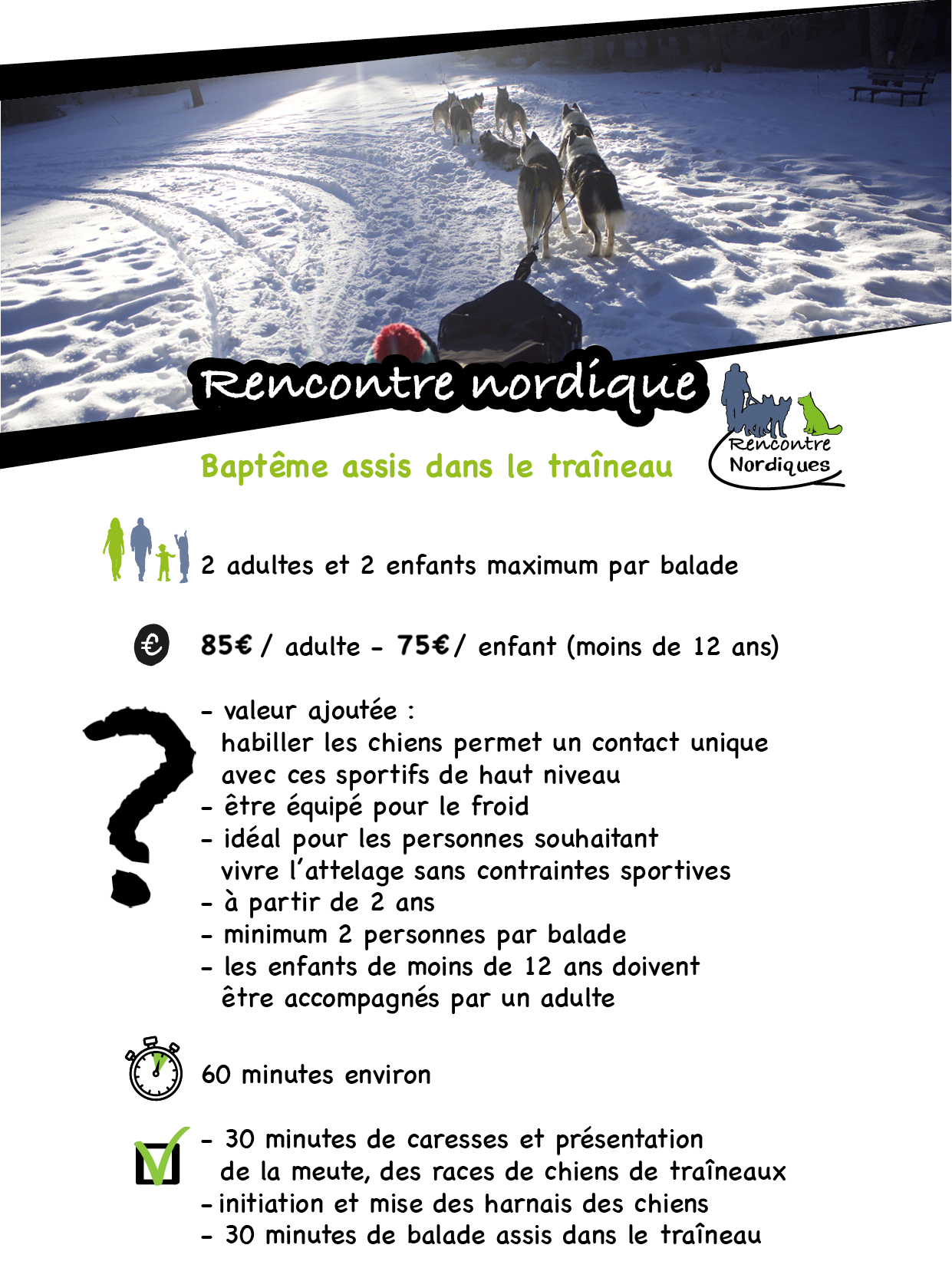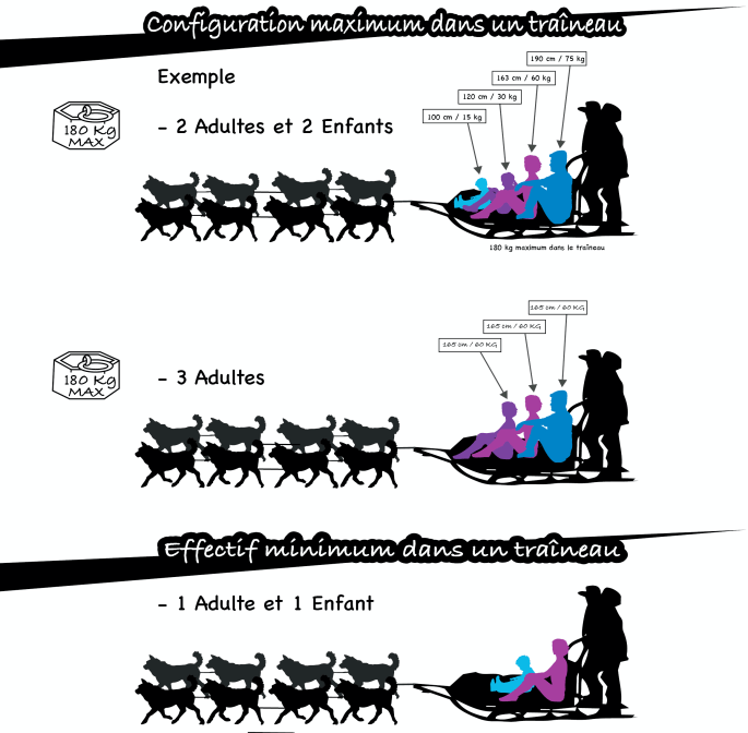 (plusieurs traineaux simultanément sont possibles avec d’autres confrères mais nous contacter avant de réserver)