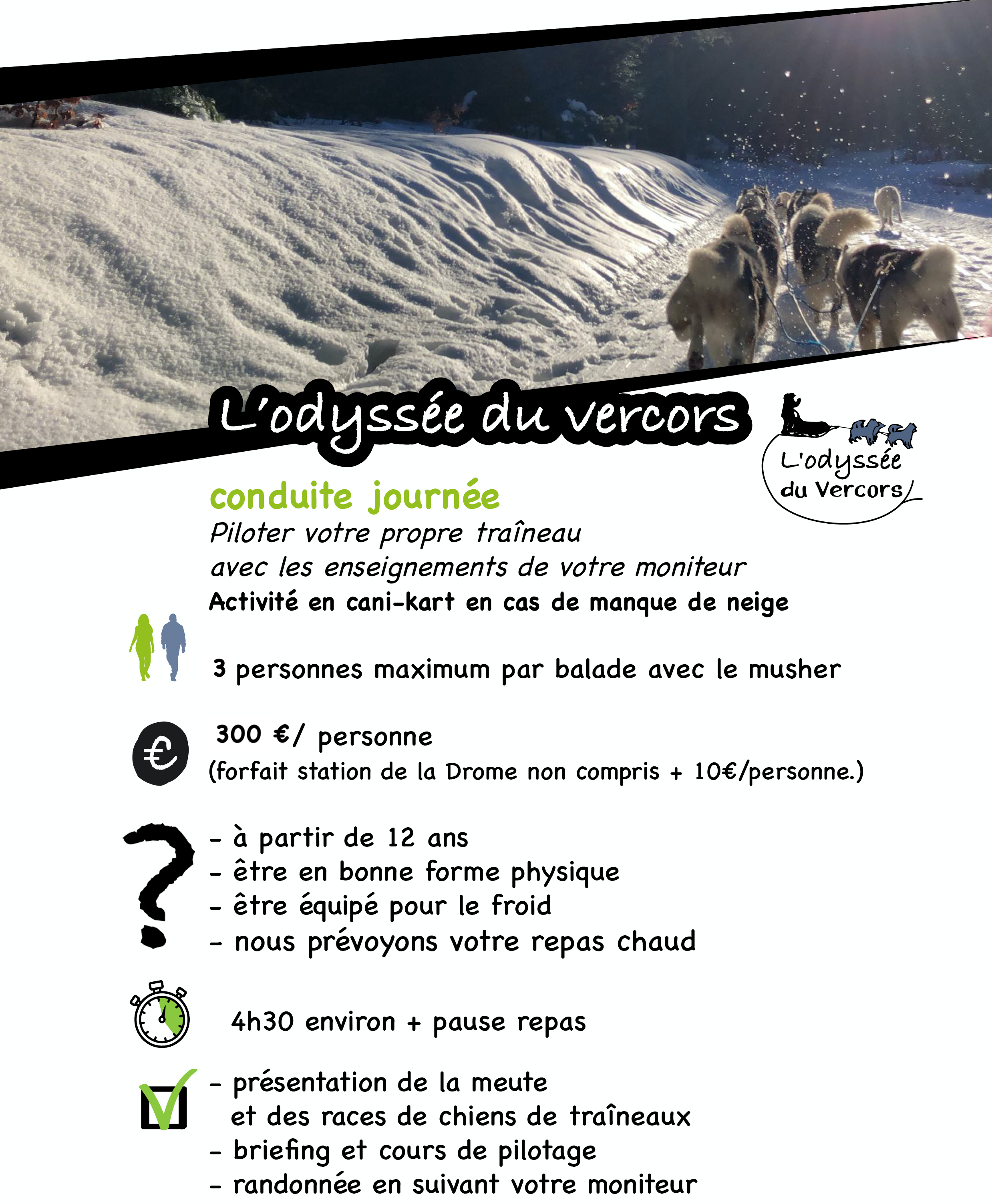 Je vous invite à contacter mes confrères sur le site la dromemontagne.fr, activité chien de traîneau.