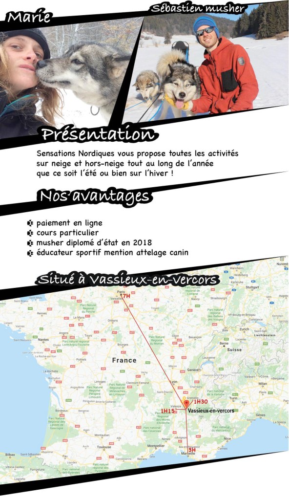 balade chien de traineau Vercors sensations nordique, téléphone 06 13 98 46 79, adresse les croix, 26420 la Chapelle-en-Vercors